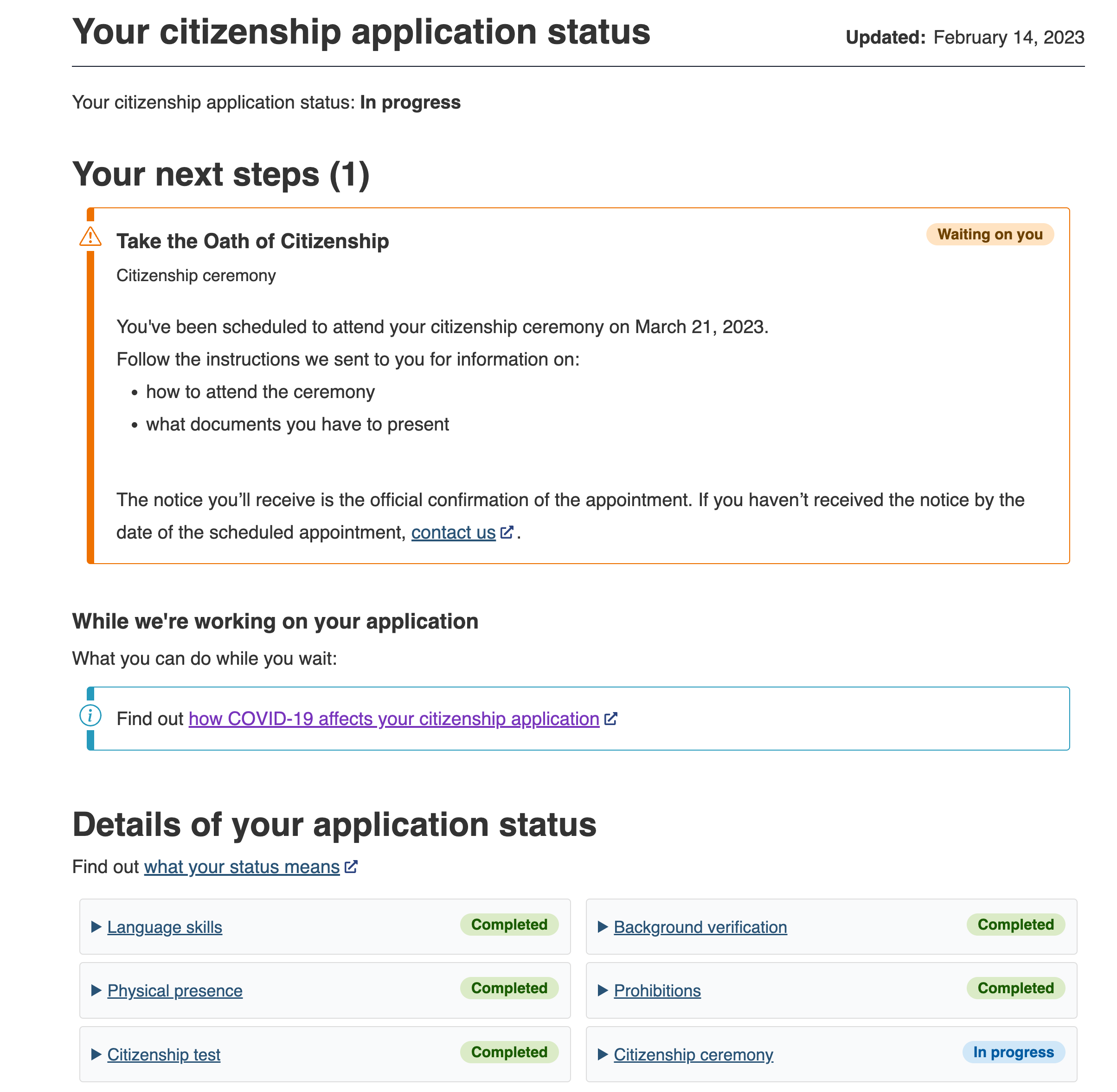 | 나의 캐나다 이민 여정기(9) - 캐나다 시민권 신청 상황 (0) | 2023.02.14 |